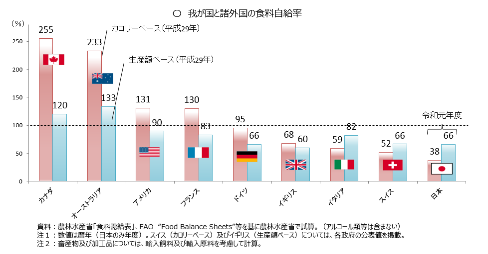 ア、日本・アメリカ合衆国・フランス・オーストラリアのうち、最も食料自給率が高いのはアメリカ合衆国で、最も低いのは日本である。⇨下の図をみてみましょう。日本・アメリカ合衆国・フランス・オーストラリアのうち最も食料自給率が低いのは日本ですが、最も高いのはアメリカ合衆国ではなくオーストラリアです。