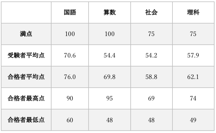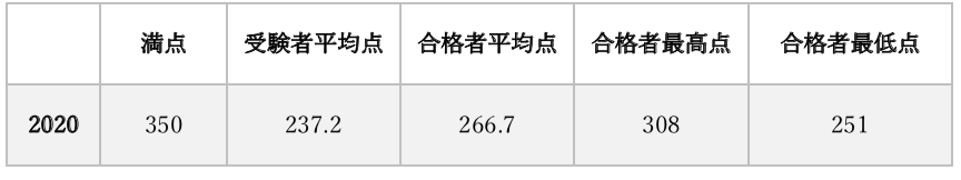 満点・受験者平均点・合格平均点・合格者最高点・合格者最低点