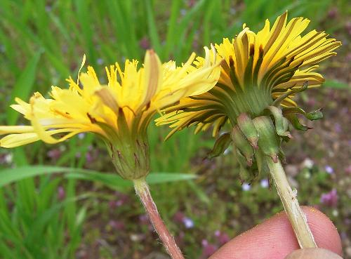 二ホンタンポポ(カントウタンポポ、カンサイタンポポ、シロバナタンポポなど)とセイヨウタンポポの違いは、たまに問題になるので知っておきましょう。花の下のがく片に注目してみましょう。