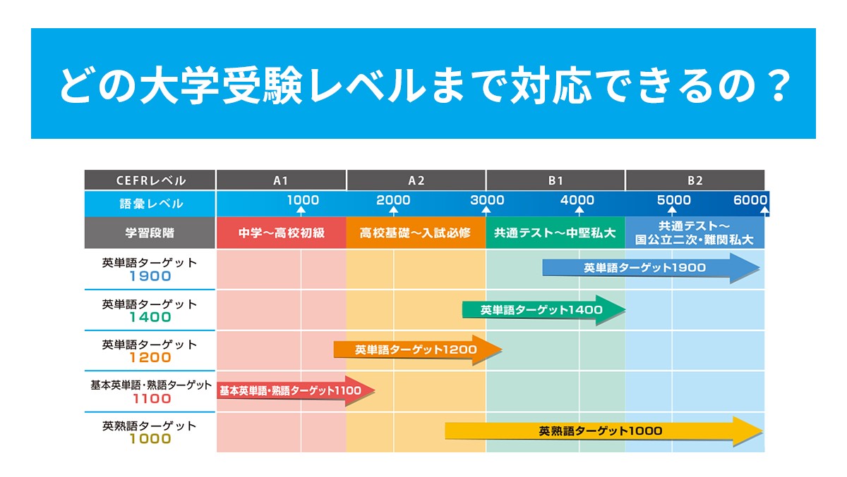 国公立2次・難関私大レベルを目標としているけれど、共通テストレベルもまだ完璧じゃないという場合は、1400にしかないレベルの単語を覚えているか確認してみるといいと思います。