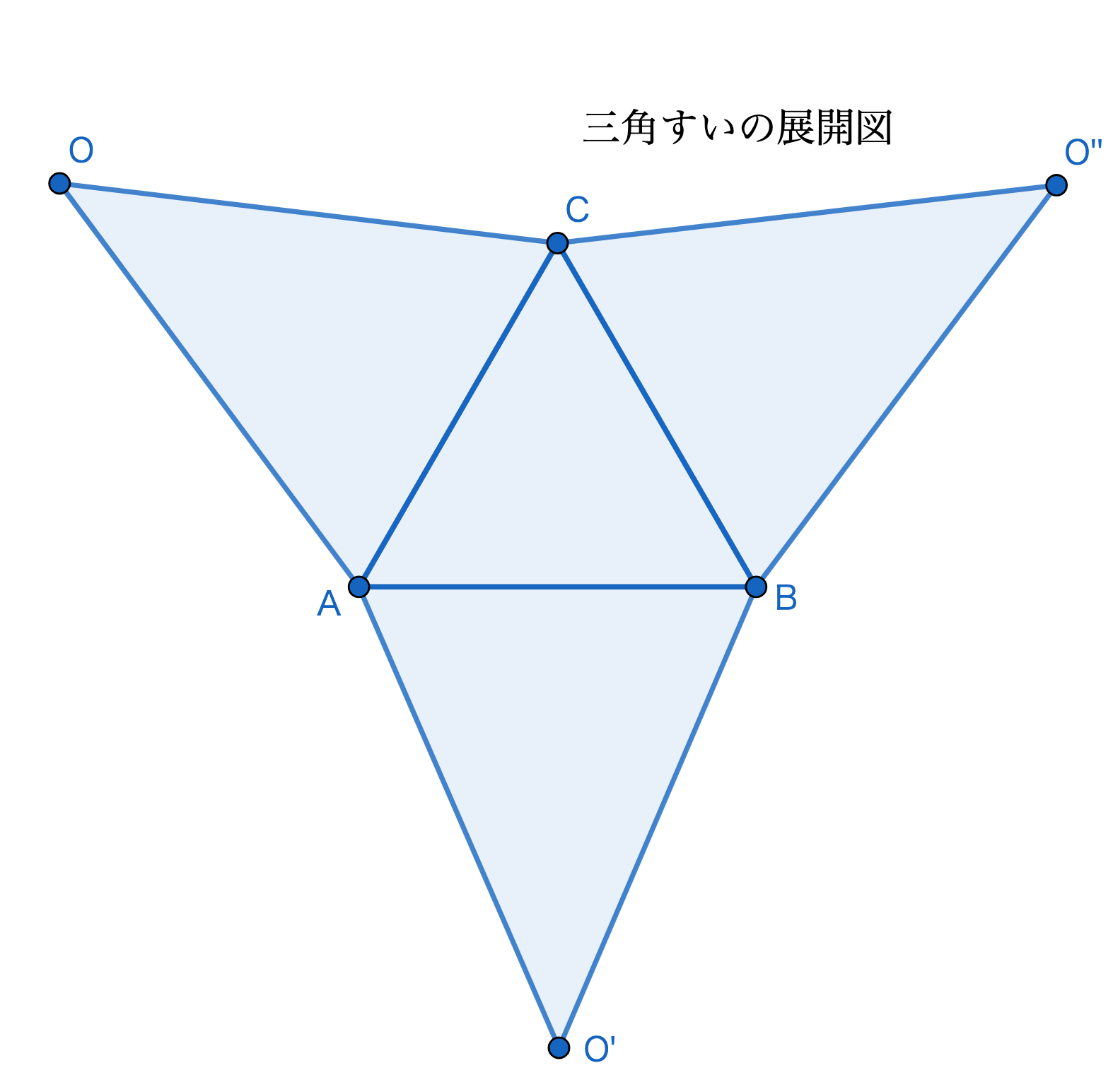 以上をまとめると,次のような平面図形ができます。A’やB’のようなダッシュがついた点は,ダッシュなしの点と重なることを指します。