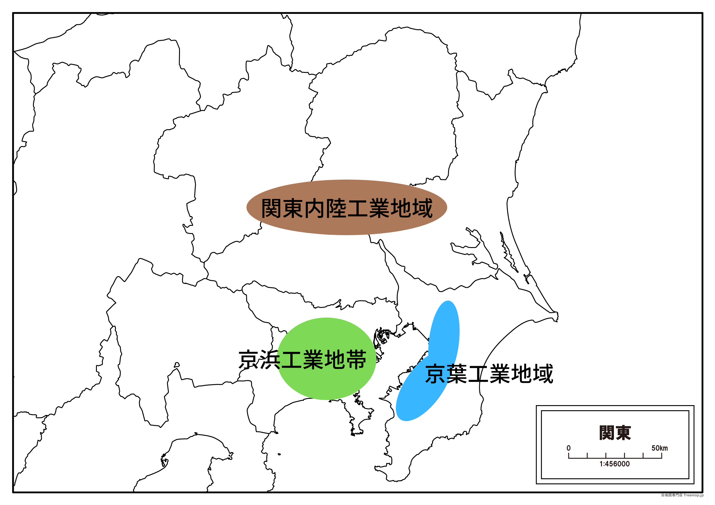 工業 | 京浜工業地帯⇨重化学工業、印刷業 京葉工業地域⇨化学工業 関東内陸工業地域⇨機械工業 |