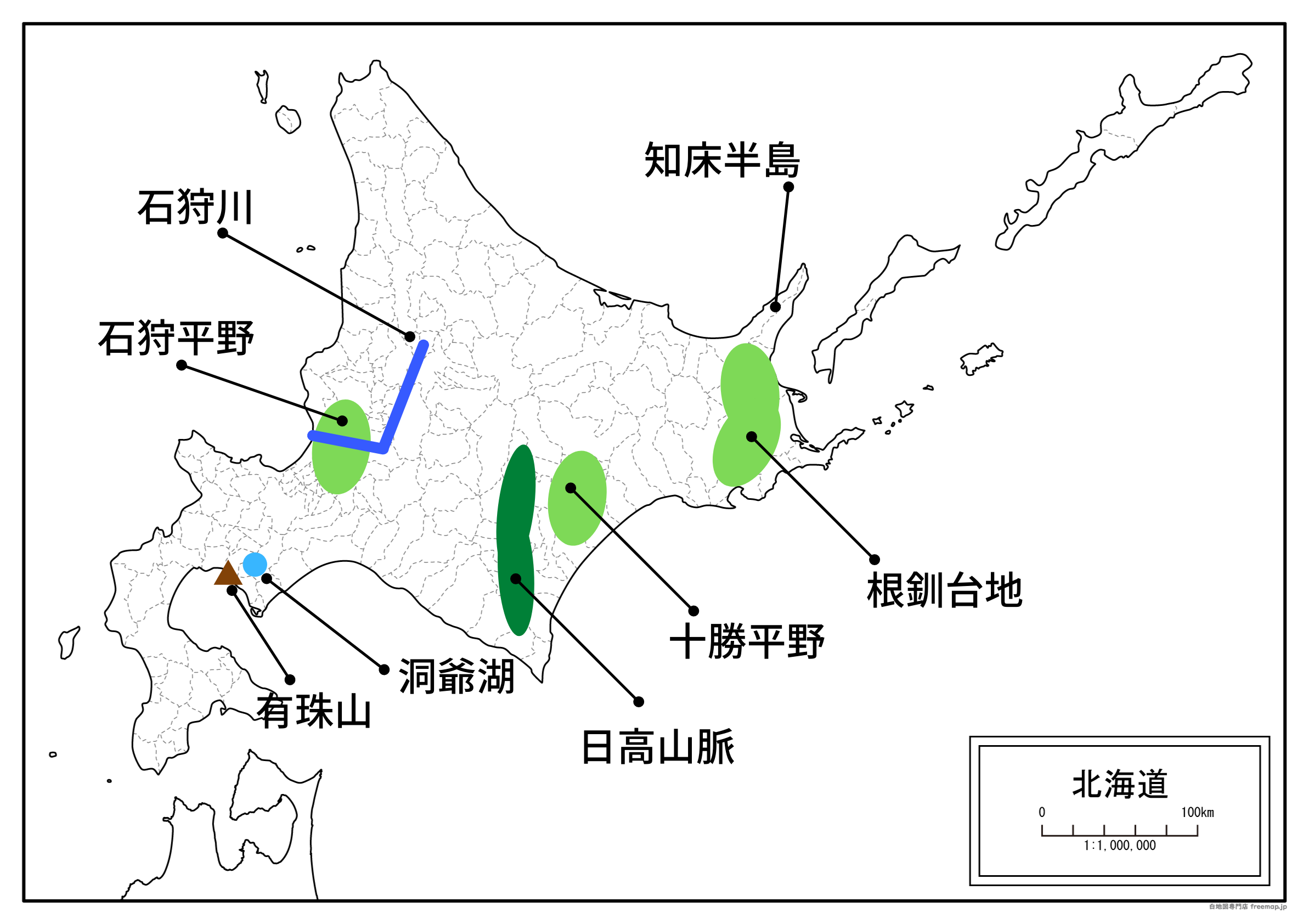 - 石狩平野…石狩川中・下流部に広がる北海道最大の平野。