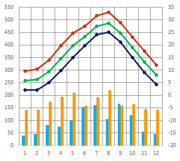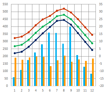 高松・高知ともに梅雨(6~7月)と秋雨・台風(9月)の時期に降水量が多くなっています。台風や南からの湿った空気の影響を受けやすい太平洋側の高知は高松と比べ全体的に降水量は多くなっています。