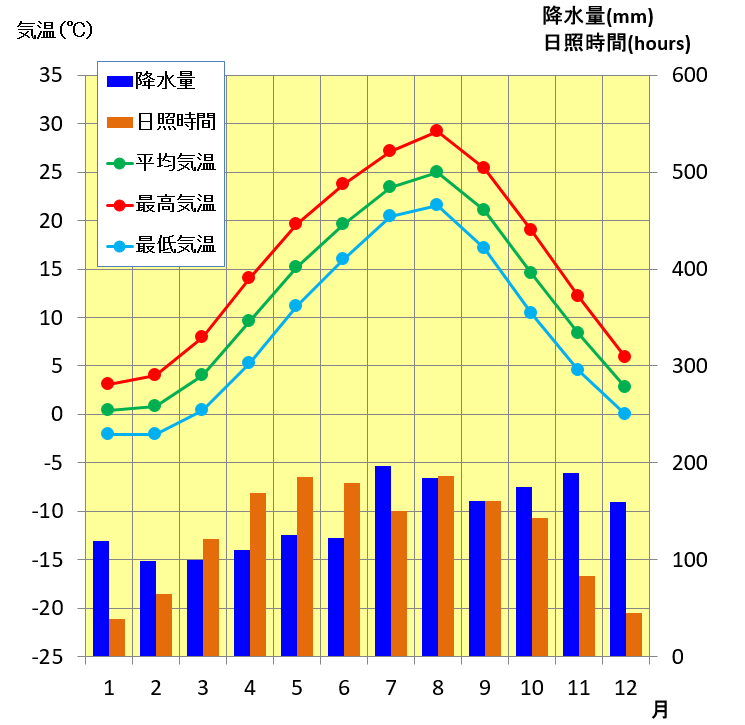 気候 | 日本海側は冬に降雪量、降水量が多くなり、太平洋側は日照時間が長くなる |
