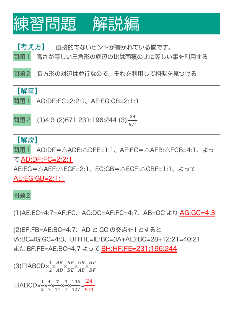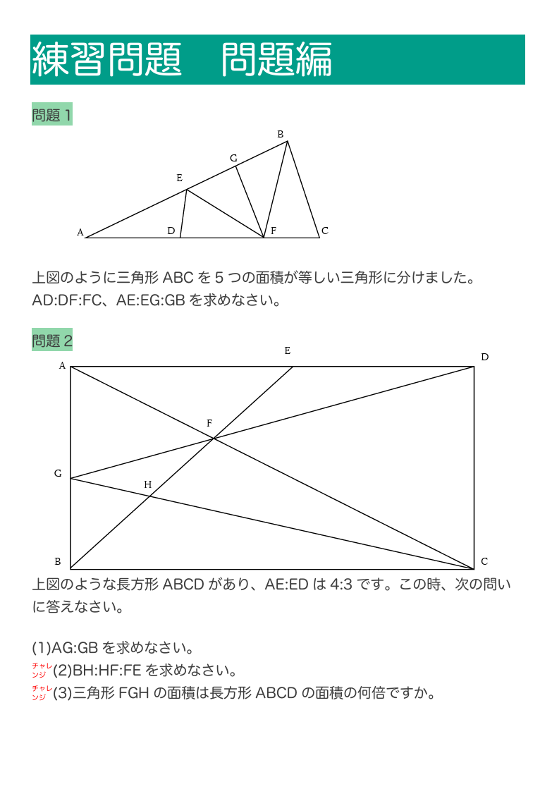 三角形の面積比を解説!問題演習で平面図形をマスターしよう<応用編その2>‐練習プリント