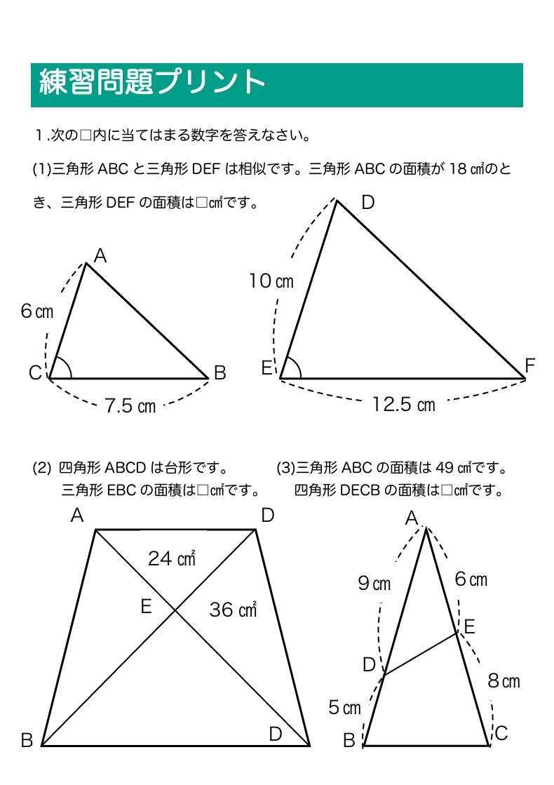 三角形の面積比を解説!平面図形が苦手な人でもわかりやすい解き方<基本編>‐練習用プリント