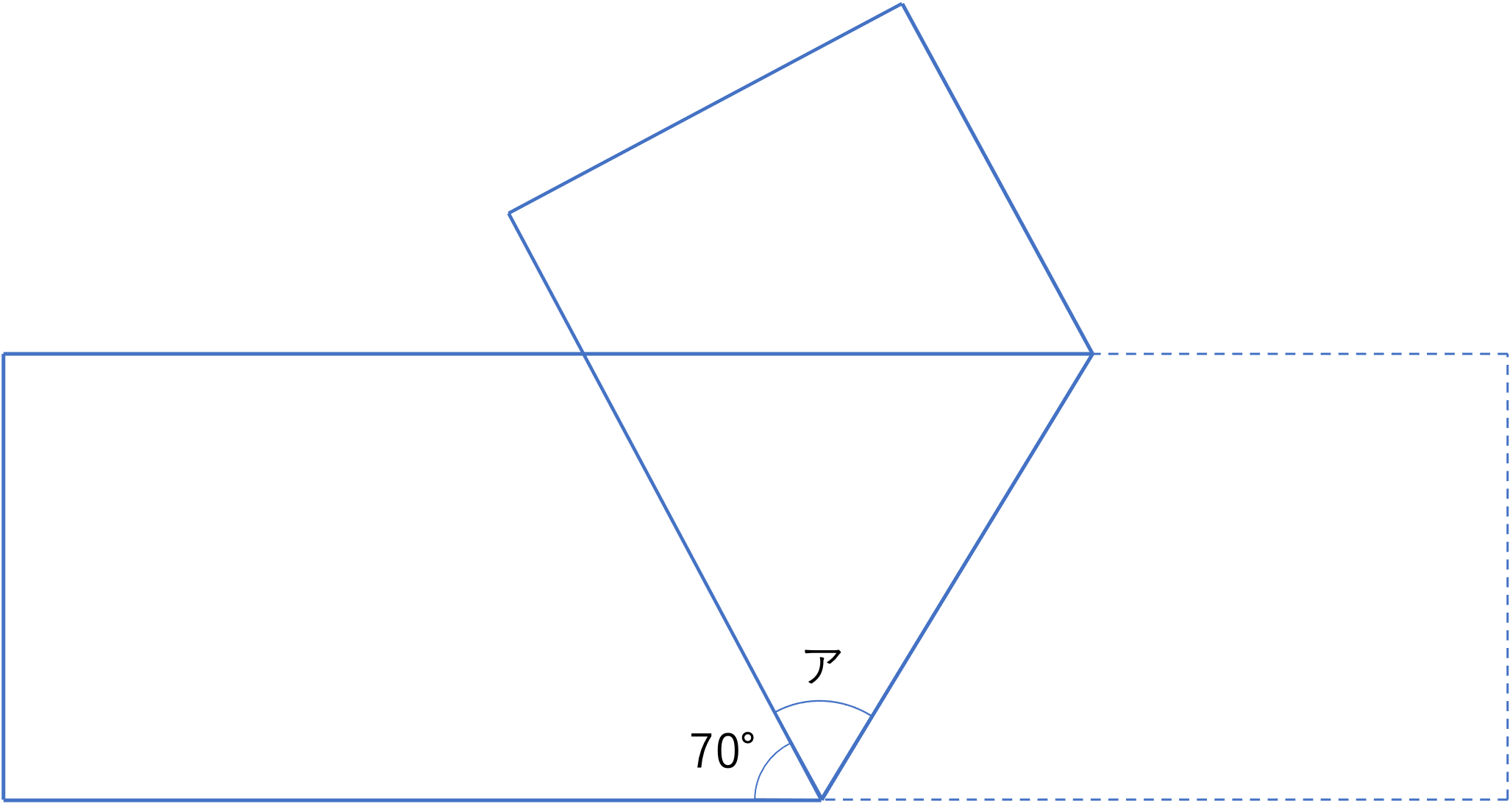 下の図は長方形を折ってできる図形です。アの角度の大きさを求めなさい。