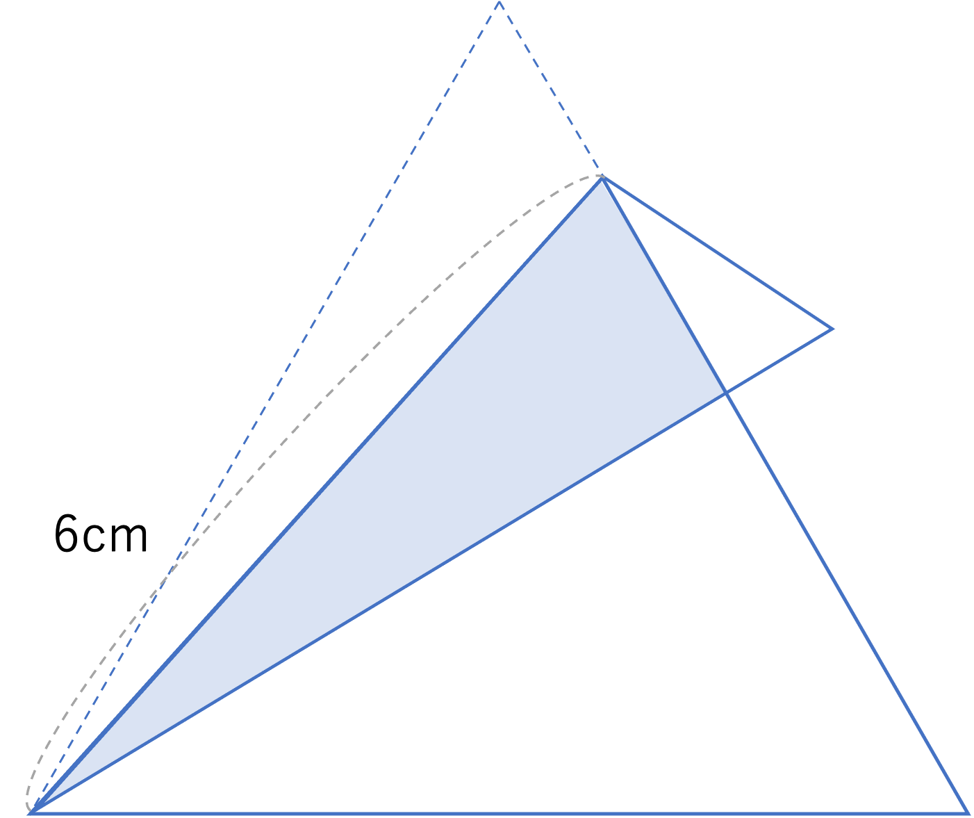 下の図のように正三角形の紙を折りました。紙が重なっている部分の面積は何cm2ですか。