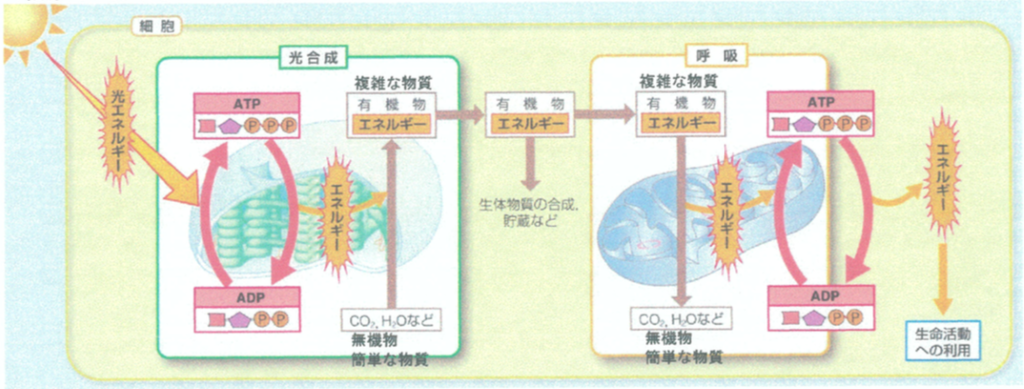 細胞内での代謝によるエネルギーのやりとりは、ATPとよばれる物質を仲立ちとして行われている。