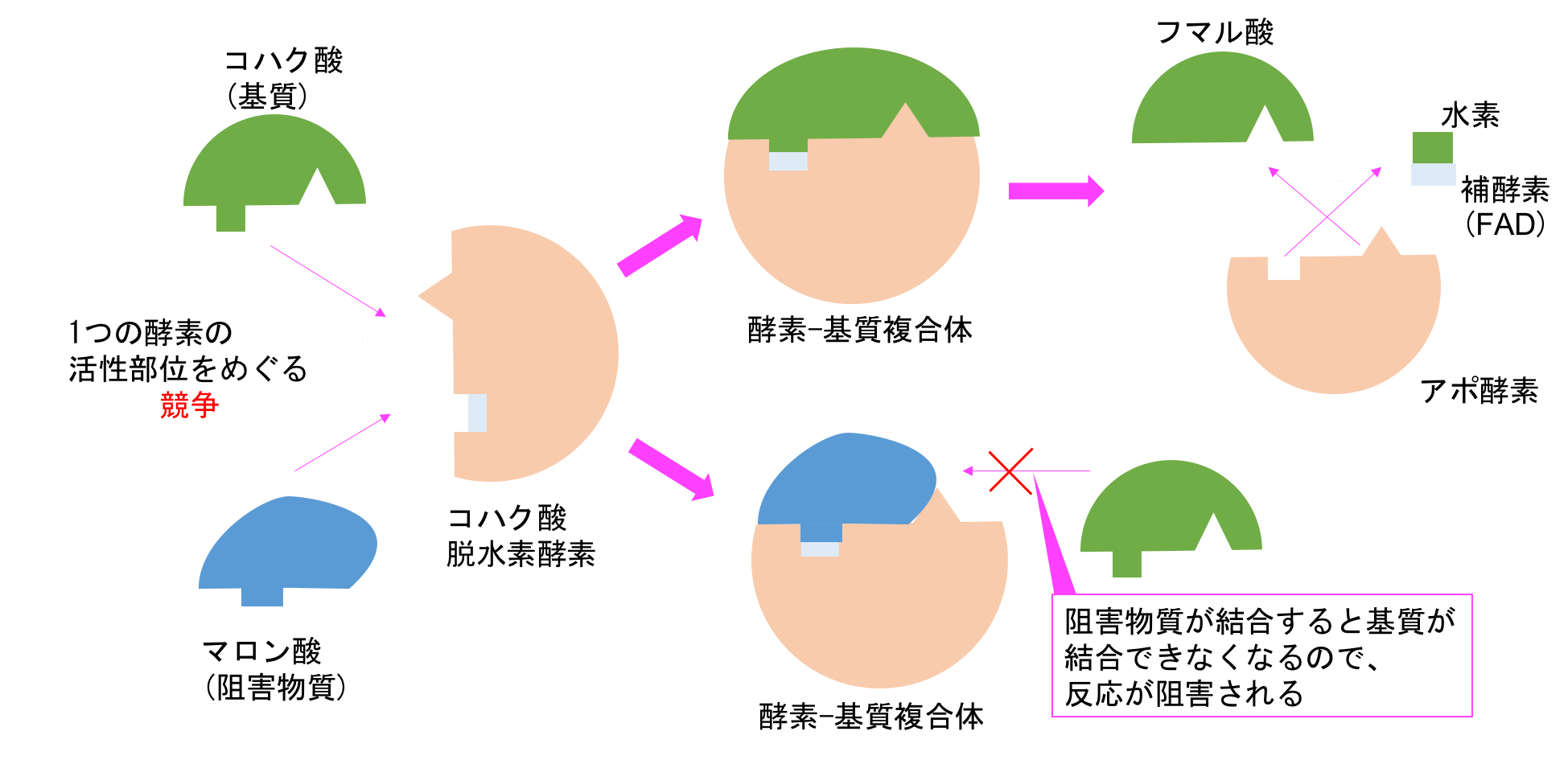 例)マロン酸によるコハク酸脱水素酵素の阻害