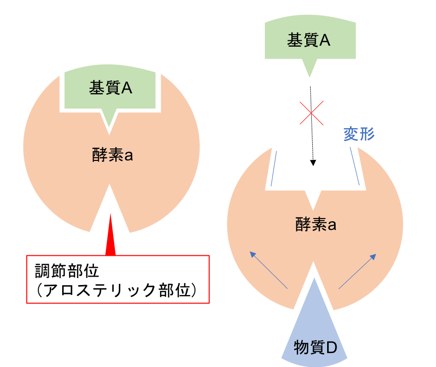 酵素の活性部位とは別の場所にアロステリック部位をもつ酵素。
