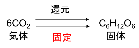 6CO2 + 12H2O + 光エネルギー → C6H12O6 + 6O2 + 6H2O