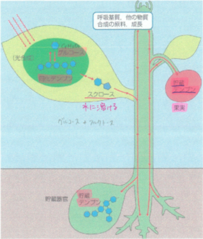 また、師管を通って運ばれるときには、グルコースが低分子のスクロースとなる。これを転流という。