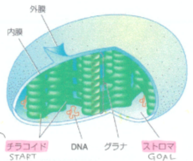 チラコイドの膜には光合成色素とタンパク質が複合体をつくっており、光エネルギーを吸収している。