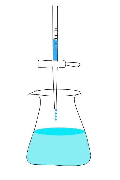 このようにビュレットを用いて少しずつ酸・塩基を入れていき、中和反応が起こり始めたところで止めることで、その滴下量から中和に要する体積が分かる。