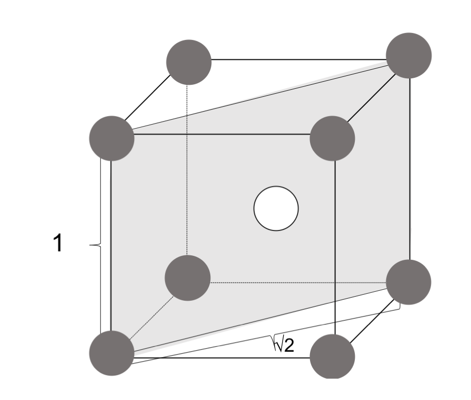 単位格子1コに含まれる金属は1/8 × 8 + 1/2 × 6 = 4コで