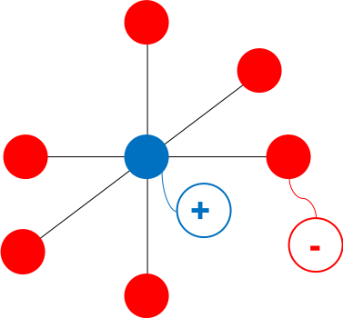 次に、1コの+イオンがいくつの-イオンに囲まれているかを考える。