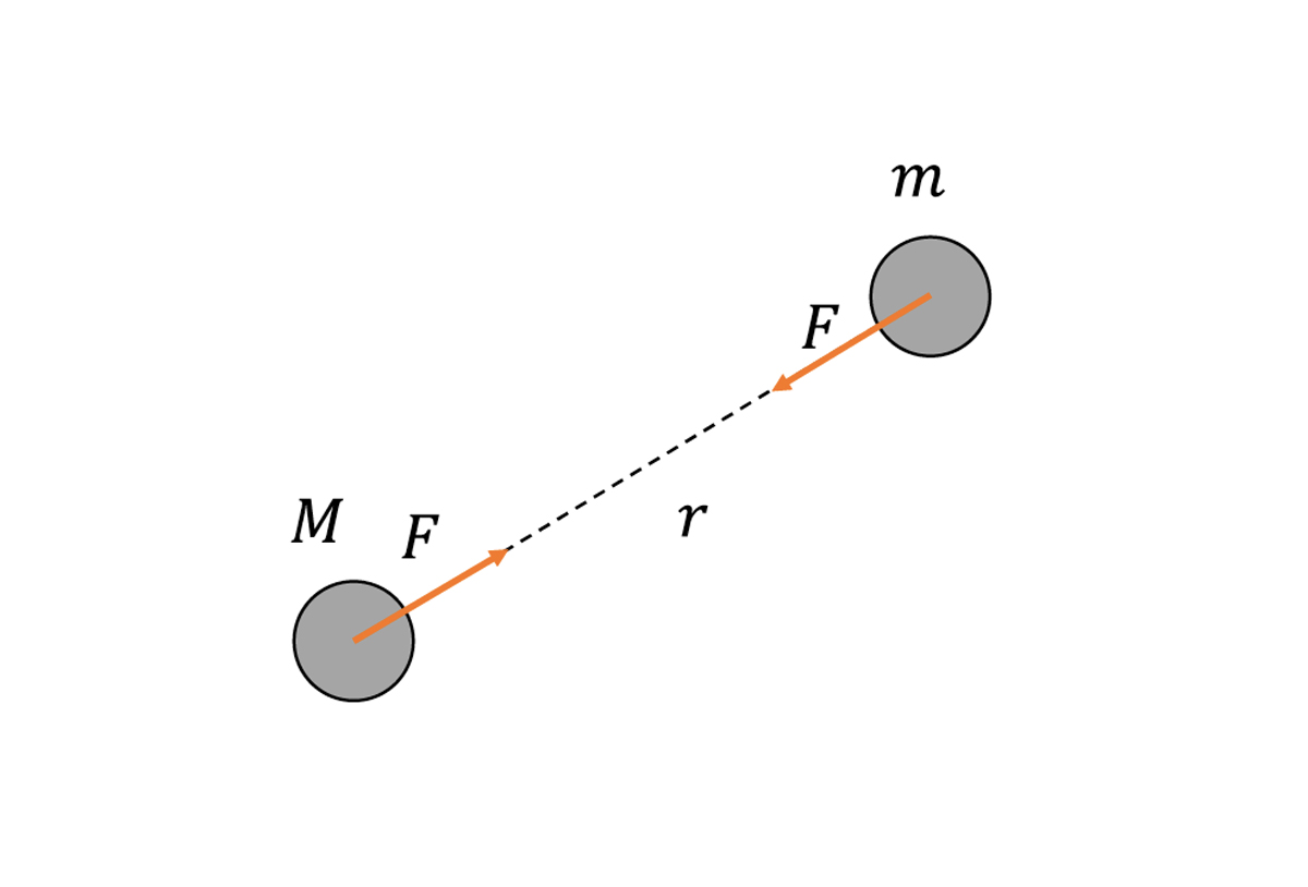 \(F = G\frac{mM}{r^{2}}\) (4)である.ここで\(G\)は万有引力定数で,