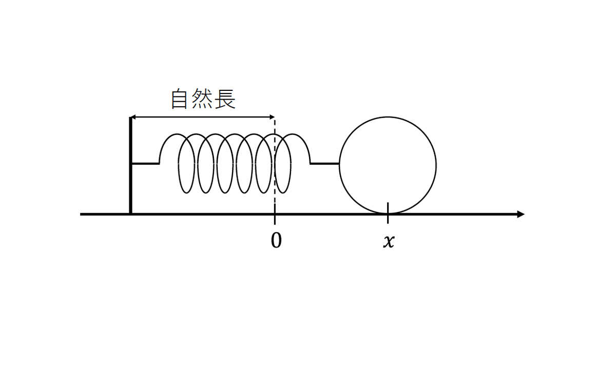 ばねに全く力を加えていないときのばねの長さを自然長という.ばねの伸びが\(\left| x\right|\)のとき,物体はばねから
