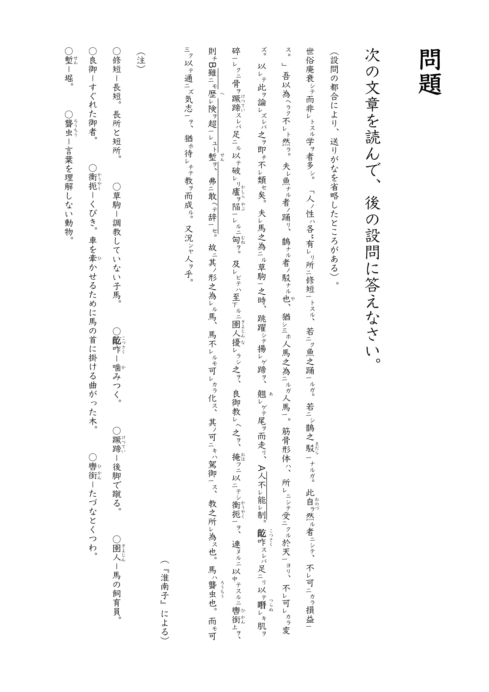 漢文問題読解・解説『淮南子(えなんじ/わいなんし)』[大学受験漢文過去問解説シリーズ]