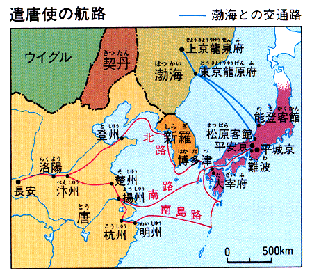 しかし、663年の白村江の戦い以降、新羅が朝鮮半島を統一し、その新羅と日本とのそりが合わず、関係が悪化してくると、しだいに朝鮮半島を経由して唐に渡ることができなくなり、九州を南下して現在の沖縄の諸島を経由して唐(中国)に入る「南東路」や、九州から直接東シナ海を横断して唐(中国)に入る「南路」が用いられるようになりました。